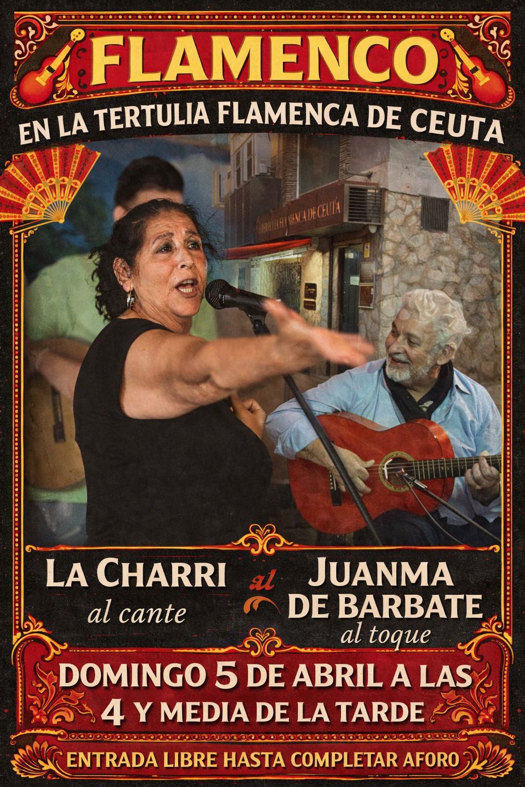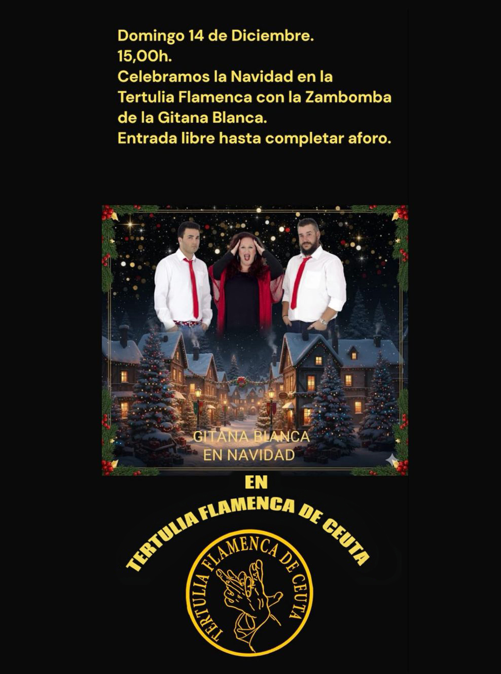 A la segunda sí ha podido ser. La Tertulia Flamenca de Ceuta ha disfrutado este domingo de la zambombá de la Gitana Blanca, que estaba prevista para el pasado 14 de diciembre, pero la borrasca Emilia impidió a estos artistas cruzar el Estrecho y llegar hasta la ciudad autónoma.